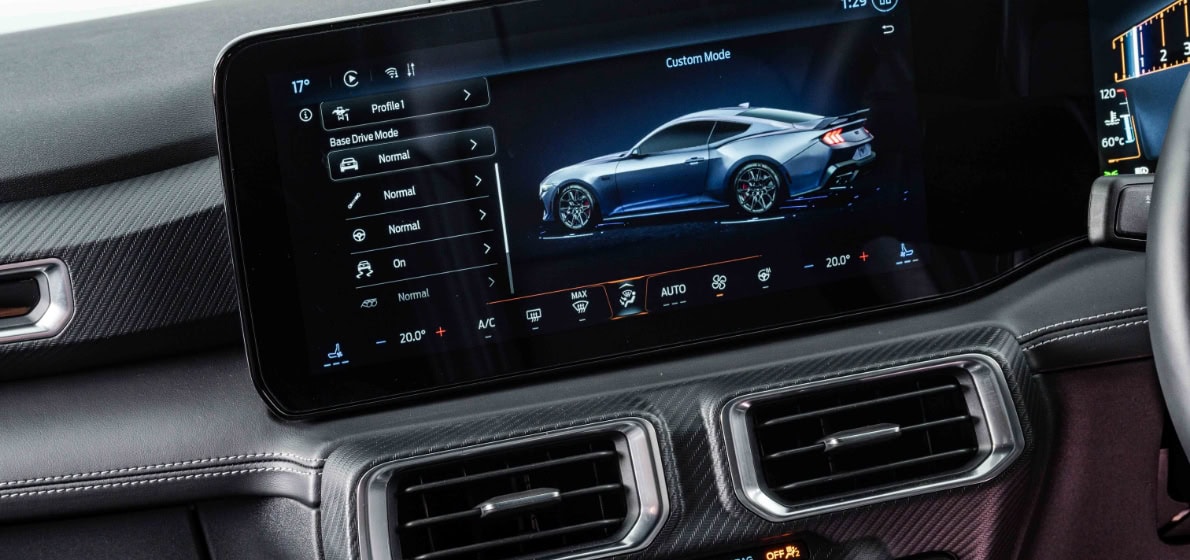 Get familiar with fearlessness and move better on various terrains with the “Normal”, “Sport”, “Track”, “Drag Strip”, “Slippery” or “Custom” drive modes of the Ford Mustang GT.